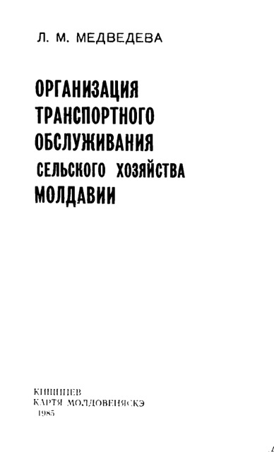 Организация транспортного обслуживания сельского хозяйства Молдавии.