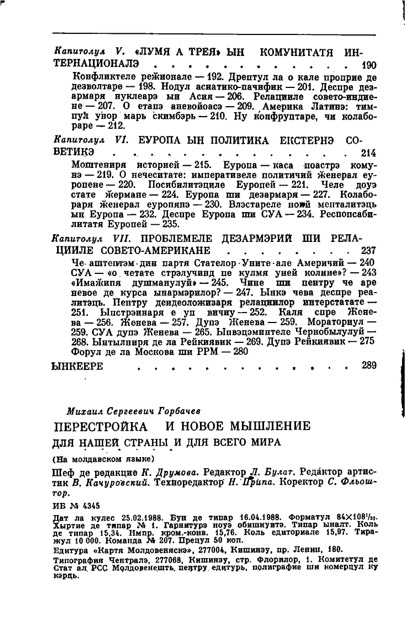Михаил Сергеевич Горбачов. Реструктураря ши ноуа менталитате пентру цара ноастрэ ши пентру ынтряга луме.