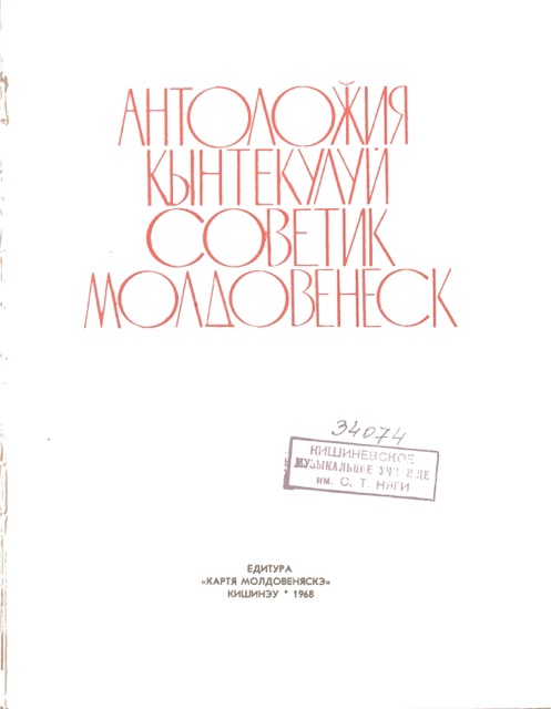 Антолоӂия кынтекулуй советик молдовенеск/Антология молдавской советской песни.