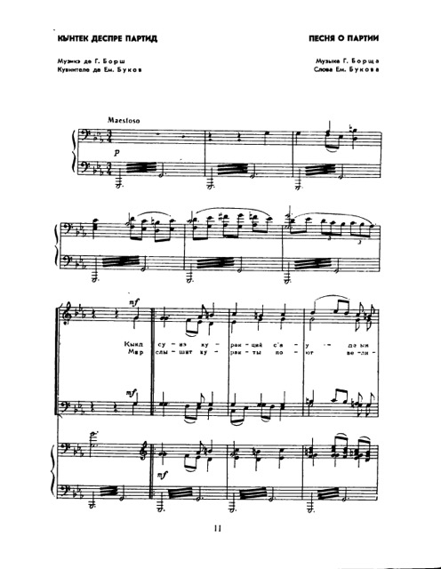 Кынтек деспре партид. Музикэ Г. Борш, версурь Е. Буков.