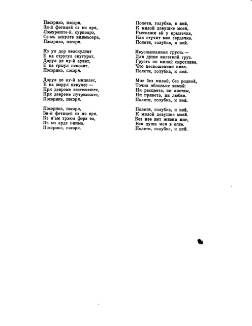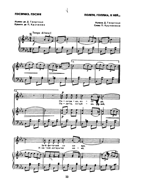 Пэсэрикэ, пэсэря. Музикэ: Д. Георгицэ, Версурь: П. Крученюк.