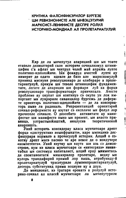 Ын лукраря де фацэ сынт супусе критичий фалсификэриле бургезе ши ревизионисте еле ынвэцэтурий марксист-ленинисте привинд ролул историко-мондиал ал класей мунчнтоаре. Ауторул дезвэлуе ынчеркэриле де а презента ынтр’ун мод денатурат ситуация класей мунчитоаре ын Униуня Советикэ ши алте цэрь але комунитэций сочиалисте, нетемейничия кончепциилор идеолоӂилор антикомунизмулуй ку привире ла скимбаря локулуй ши ролул ей ын продукция обштяскэ ын кондицииле револуцией технико-штиинцифиче ши “слэбиря” луптей де класэ ын цэриле капиталиэмулуй ши релевэ интенсификаря луптей партиделор марксист-ленинисте ымпотрива антикомунизмулуй ши ревизионизмулуй, пентру унитатя класей мунчитоаре интернационале, а тутурор форцелор прогресисте.