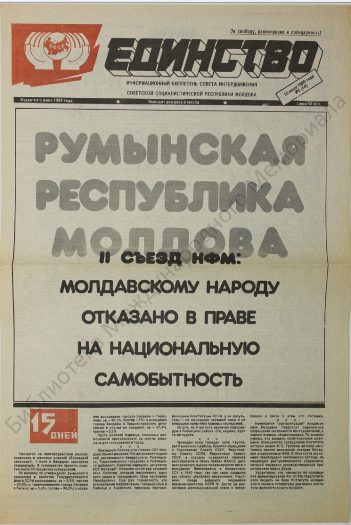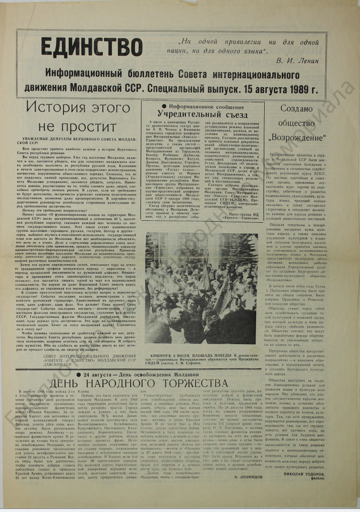 Информационный бюллетень Совета интернационального движения Молдавской ССР.