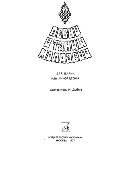 ПЕСНИ И ТАНЦЫ МОЛДАВИИ ДЛЯ БАЯНА ИЛИ АККОРДЕОНА.