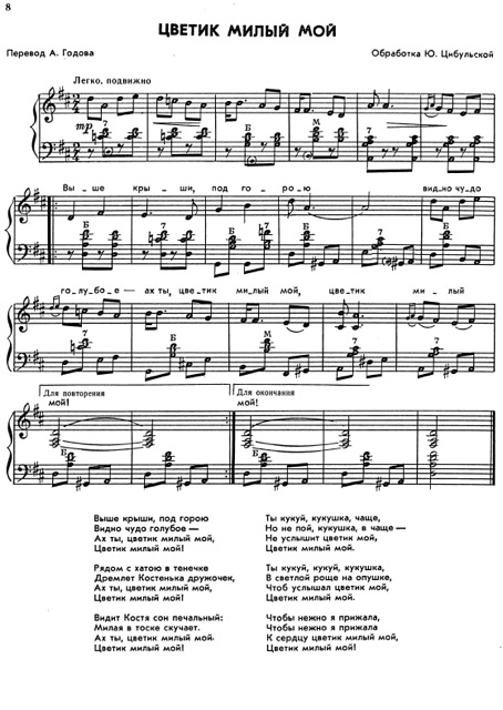 ЦВЕТИК МИЛЫЙ МОЙ. Обработка Ю. Цибульской. Перевод А. Годова
