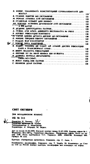 Картя де фацэ е консакратэ Марелуй Октомбие, ноий Конституций а Униуний РСС, Партидулуй, луй В. И. Ленин. Материалеле инклусе ын еа поартэ печетя моментулуй кынд ау фост аштернуте пе хыртие (унеле – ынкэ атунч кынд ын царэ се дискута проектул ноий Конституций), ынсэ фаптул ачеста ну ле диминуязэ импортанца документаристикэ, чи ворбеште ын мод конклудент деспре ангажаря директэ ши оперативэ а скрииторилор дин републикэ ын дезбатеря кестиунилор афлате ла ординя де зи а Историей ноастре.