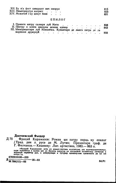 Кишинэу, Литература Артистикэ, 1983.