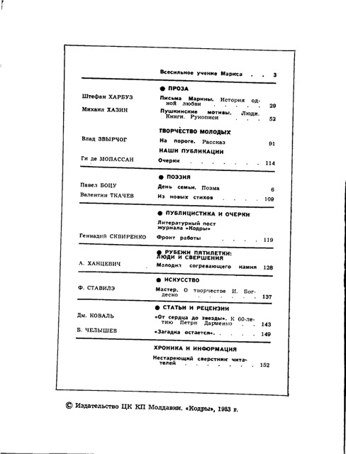 Кишинэу, Литература Артистикэ, 1985.