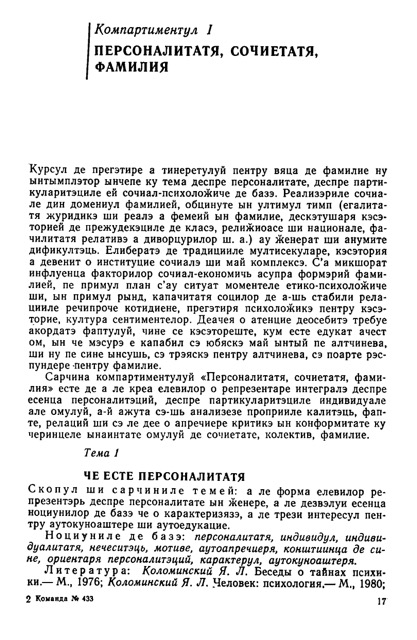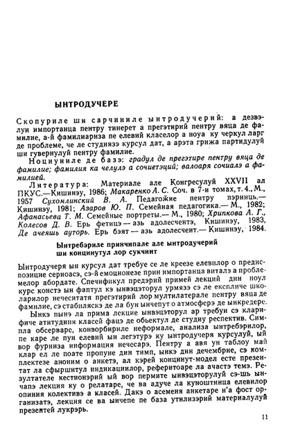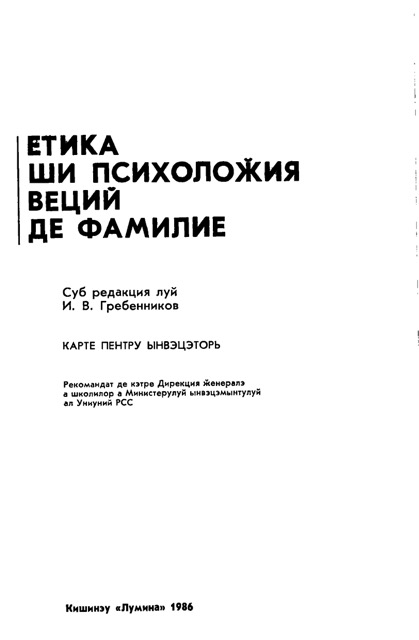 Лукраря репрезинтэ о карте пентру лектурэ ла курсул “Етика ши психолоӂия веций де фамилие”. Прегэтиря ку скоп бине детерминат пентру вяца де фамилие конституе уна дин латуриле импортанте але формэрий персоналитэций. Ын ачаста констэ идея принчипалэ а кэрций. Ауторул акордэ атенцие унор астфел де проблеме, ка релацииле динтре тинерь ши тинере, приетения, драгостя, релацииле дин кадрул фамилией ш. а. м. д.