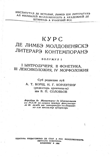 Курс де лимбэ молдовеняскэ литерарэ контемпоранэ.