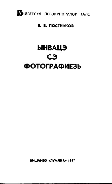 В. Постников. Ынвацэ сэ фотографиезь. August 11, 2025 by Arhiva Digitala В. Постников. Ынвацэ сэ фотографиезь. Традучере дин лимба русэ: Ш. Тирон. Кишинэу, Лумина, 1987. Legătură: MediaFire Read more