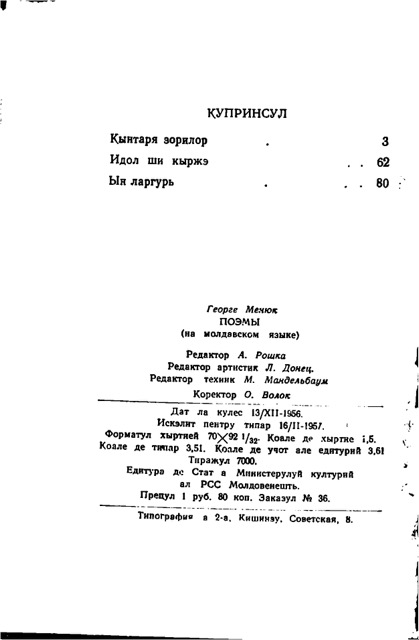 Кишинэу, Едитура де Стат а Молдовей, 1957.